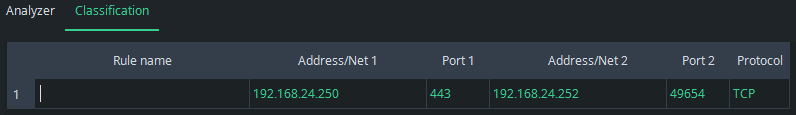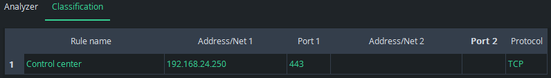The view returns to the Classification tab and the information of the selected flow appears as a new rule: