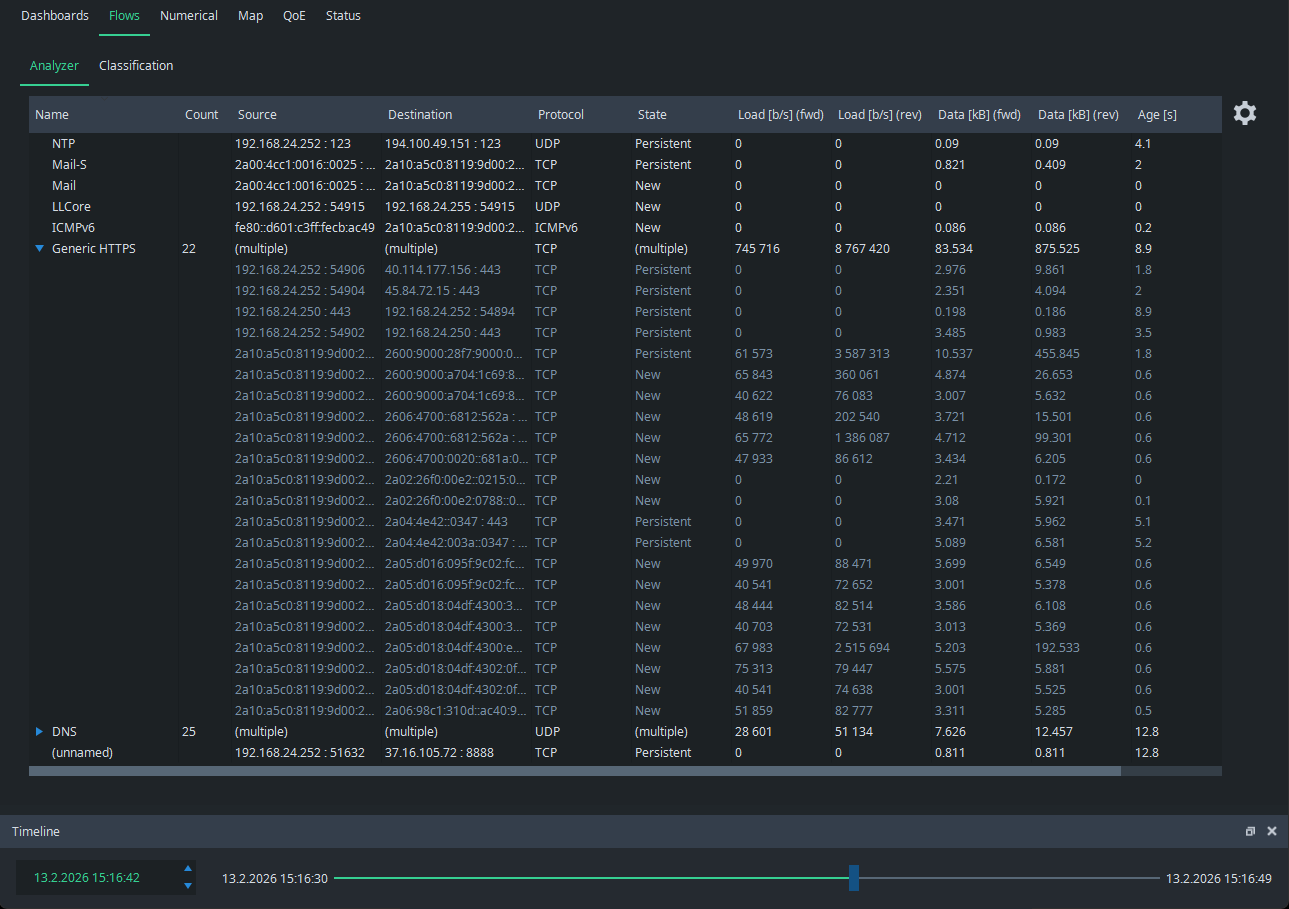 Flow Analyzer is a versatile tool that allows you to examine the details of what kind of traffic flows the total traffic is composed of.