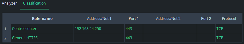 If there is HTTPS traffic from IP address 192.168.24.250, it will be categorized as Control center traffic despite fact that it also fits the second rule.