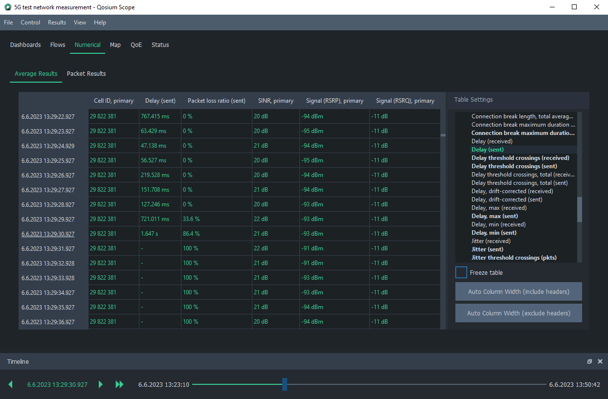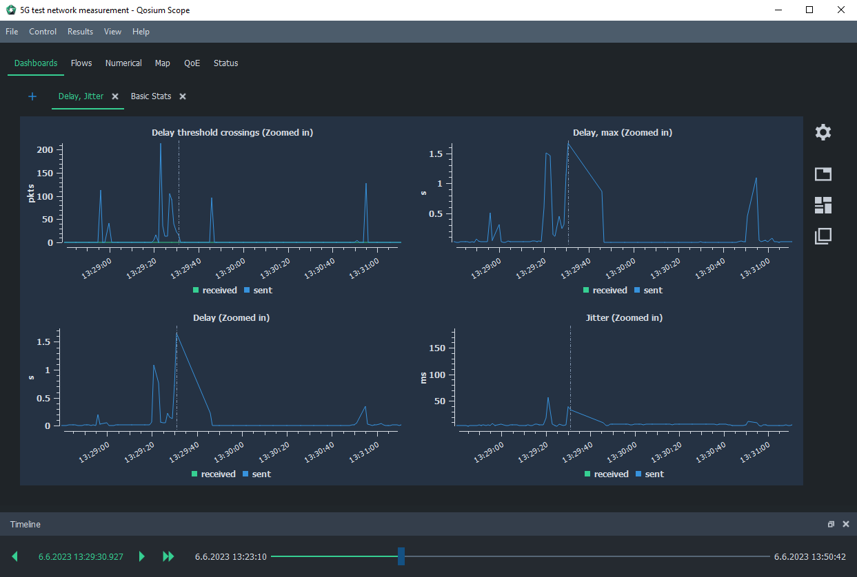 Timeline is a useful feature in Qosium Scope to align interesting observations in the results between different statistics and views.