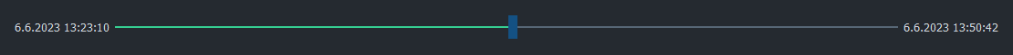 The time selection bar also works in two directions. As seen below, the bar shows that the timeline marker is now located around the middle of the measurement. To set the marker to the desired place, grab the timeline indicator (the blue rectangle) with your mouse and drag it where desired. Once you have selected the timeline indicator, you can also use the arrow keys right and left to move the timeline in single result steps.