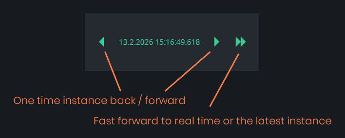 The fast-forward button takes you back to real-time or just to the latest value if the measurement is not running. Once in real-time, the button gets gray: